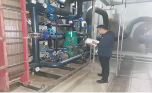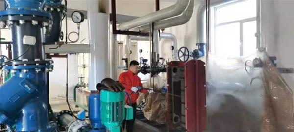 供熱工人對(duì)換熱設(shè)備進(jìn)行檢...